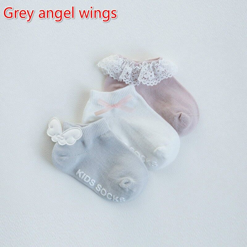 3 Pairs/Lot Newborn Baby Socks Lace Flower Wings Socks Anti Slip Floor Socks