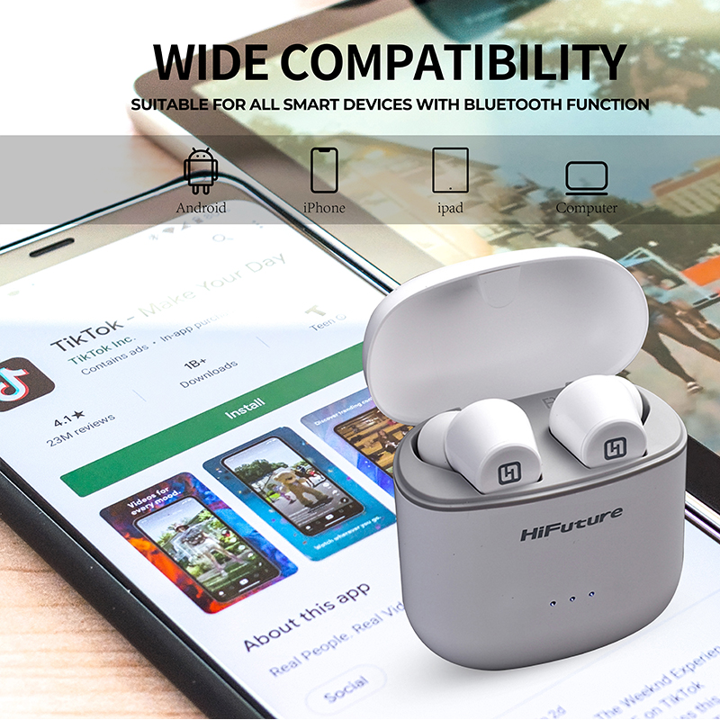 HiFuture FlyBuds True Wireless Earbuds Bluetooth 5.0 Earphone Sport Music Earphones Touch Control Earbuds Noise Canceling Headset with Built-in Microphone -Pink/Green/White/Black