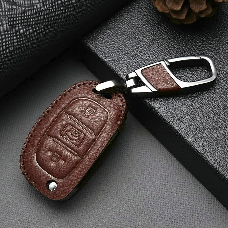 Genuine Leather Car Key Case For Hyundai i10 i20 i30 HB20 IX25 IX35 IX45 TUCSON Avante Key Cover Holder Car Accessories
