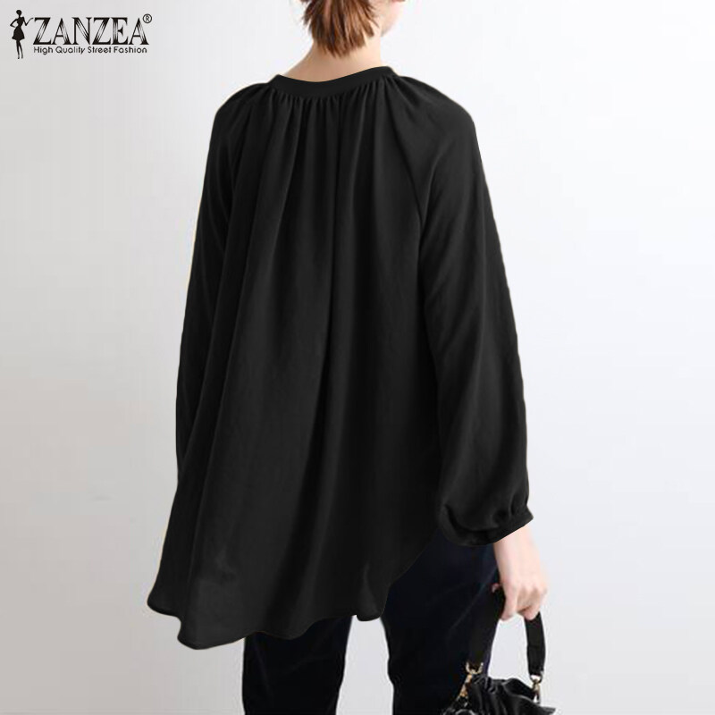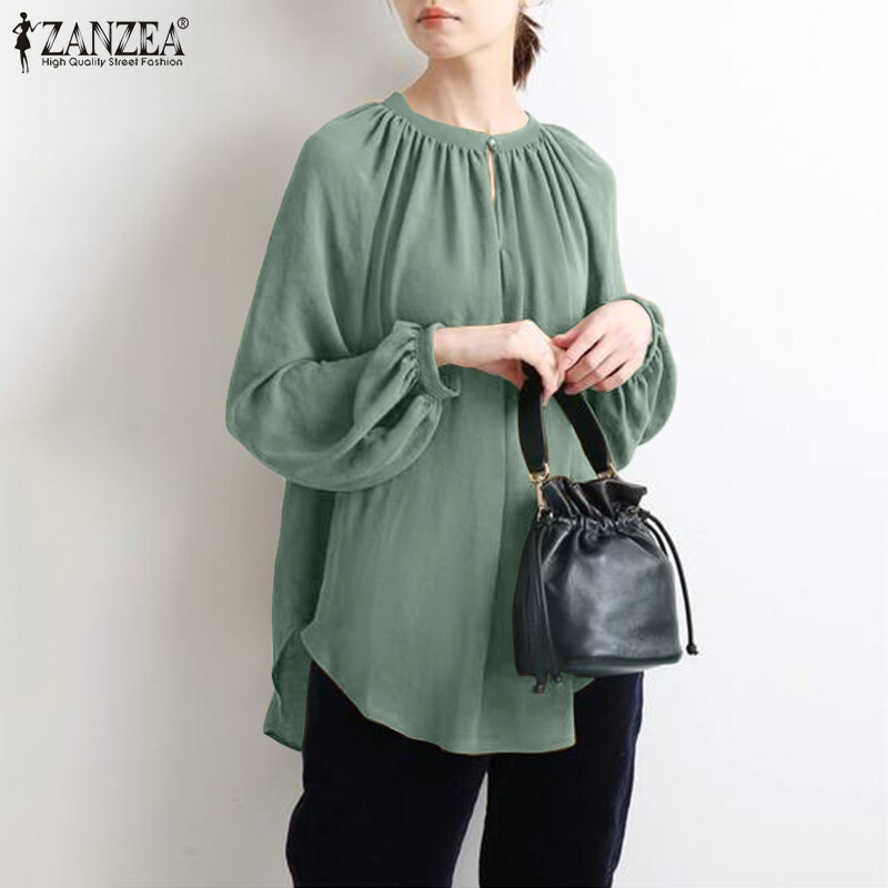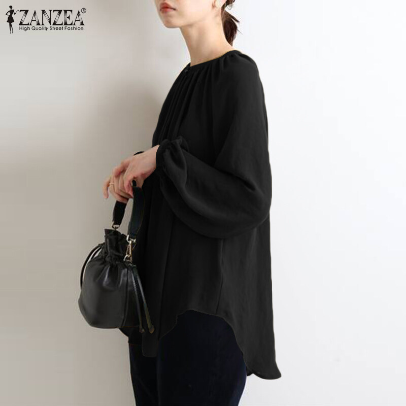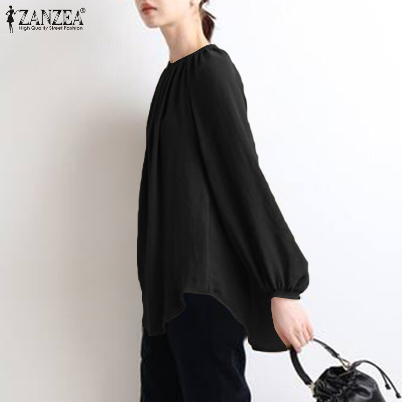 ZANZEA Womens Puff Sleeve Elastic Cuff High Low Top Casual Loose Shirt Blouse Plus Size
