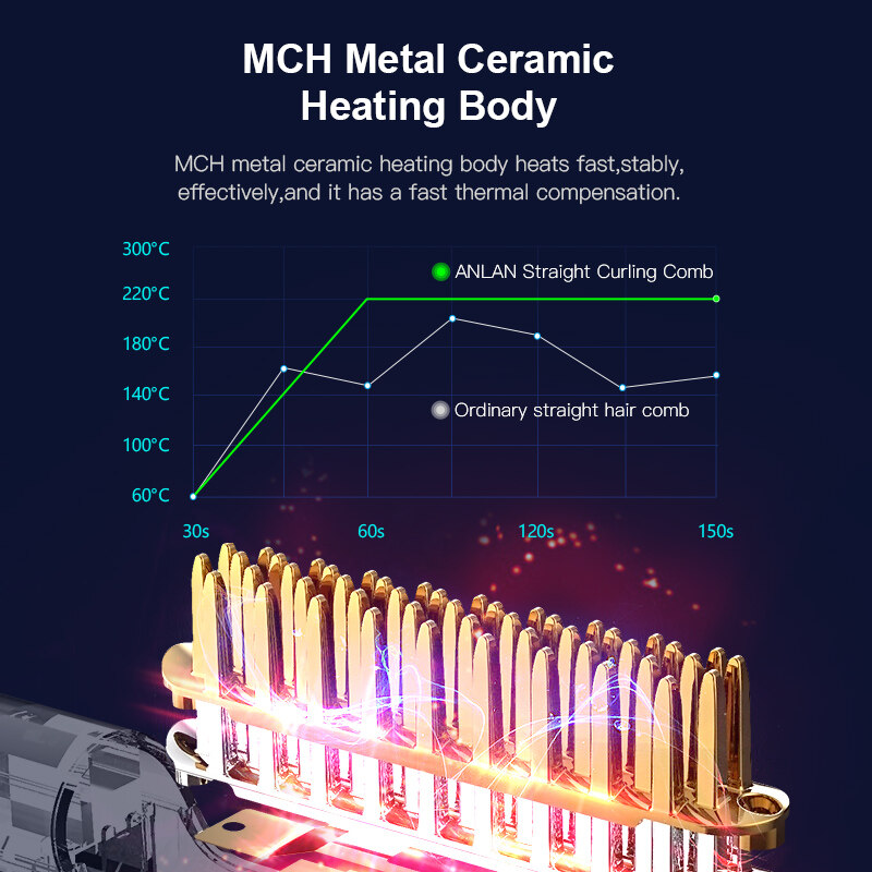 ANLAN Negative Ion Hair Straightener Brush Electric Heating Hair Comb Smoothy Messy Hair