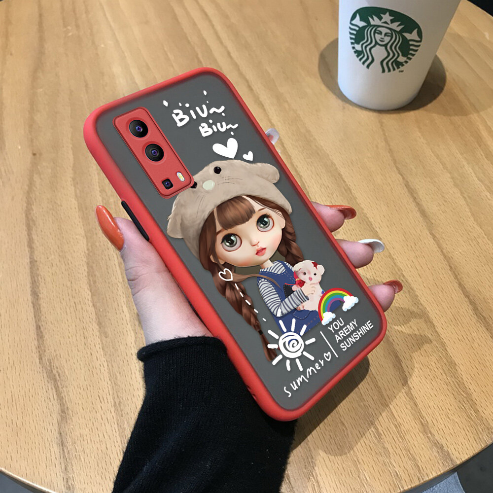 Hontinga Casing Case For VIVO Y72 5G Case Cute Rainbow Girls Lovely Girl Frosted Transparent Hard Anime Phone Case Full Back Cover Casing Lens Camera Protector Cases Hard Case For Girls For Women