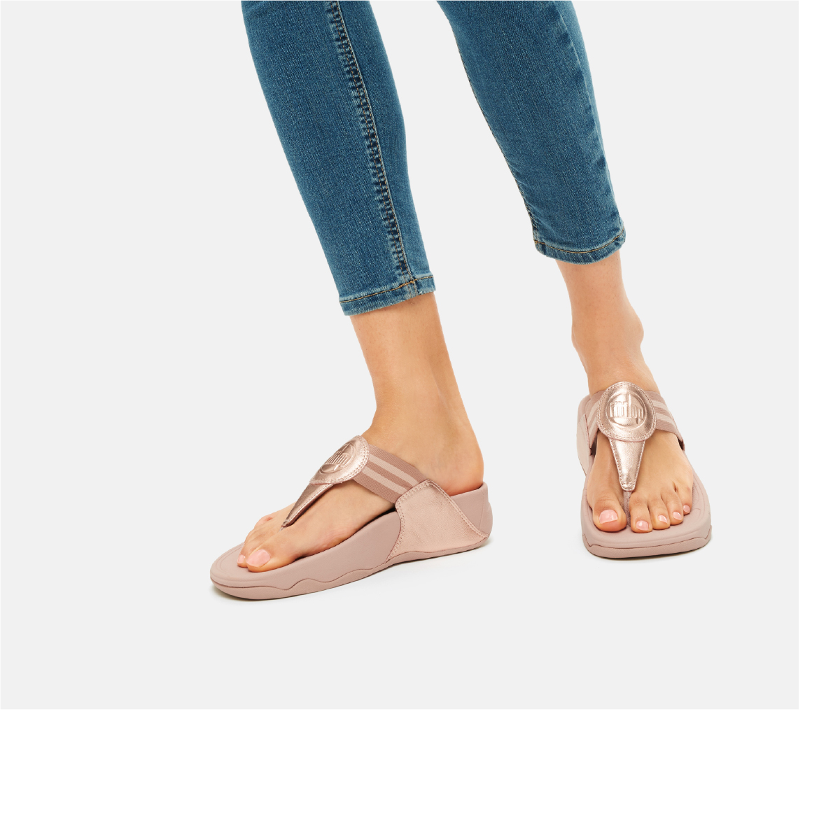 FitFlop WALKSTAR Women's Webbing Toe-Post Sandals - Rose Gold (DX4-323)