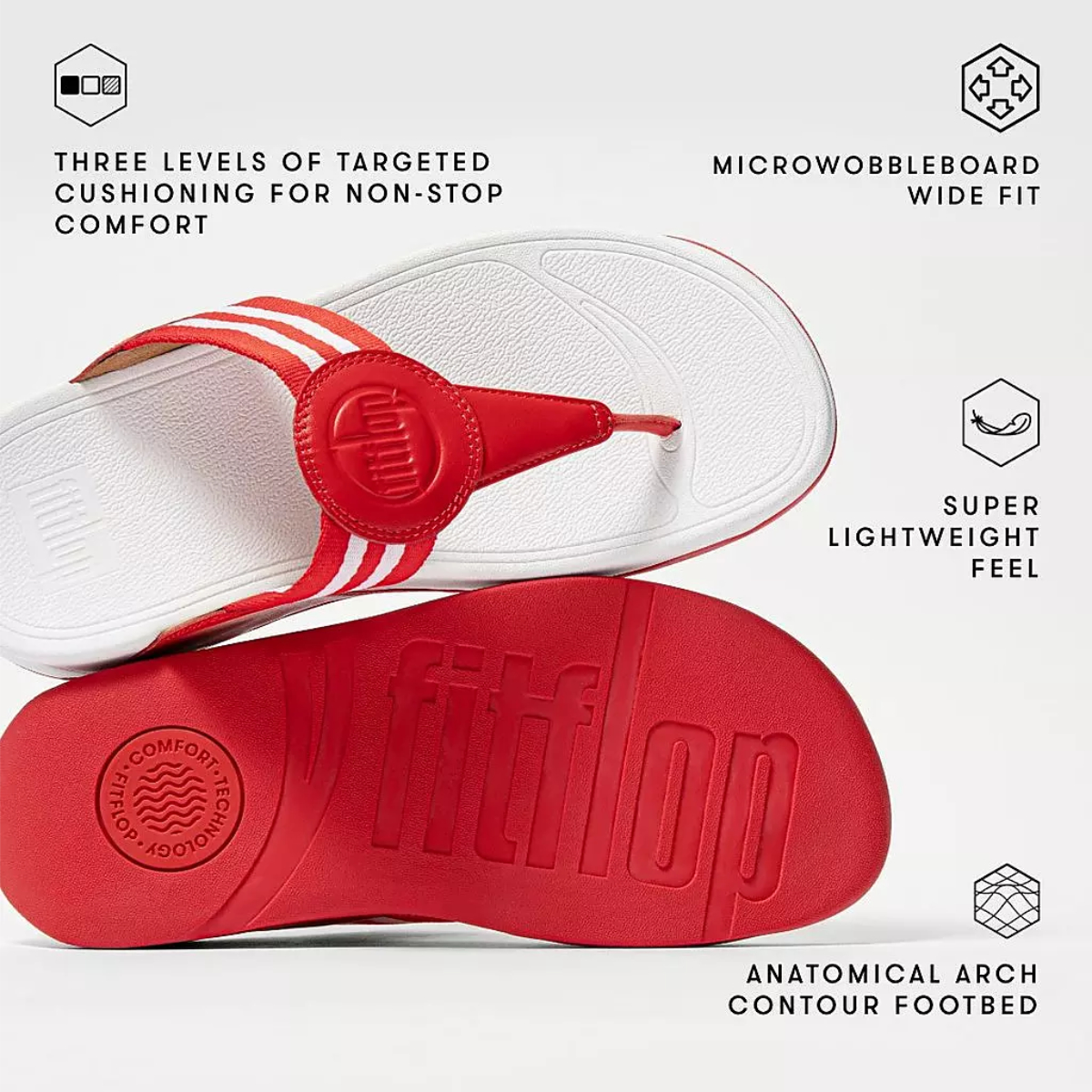 Forever a favourite, our original, one and only, wide-fit, sporty webbing Walkstar is back! The sandal that launched FitFlop (in 2007), that sold millions worldwide, and sparked instant devotion in the women who wore it. This new version has everything that made it a legend: sporty stripes, soft light webbing straps, leather detailing (including the FitFlop roundel on the front) and, of course, our ergonomic supercushioning Microwobbleboard™ midsoles. Get ready to fall in love all over again with these magic, wide-fit toe-post sandals.