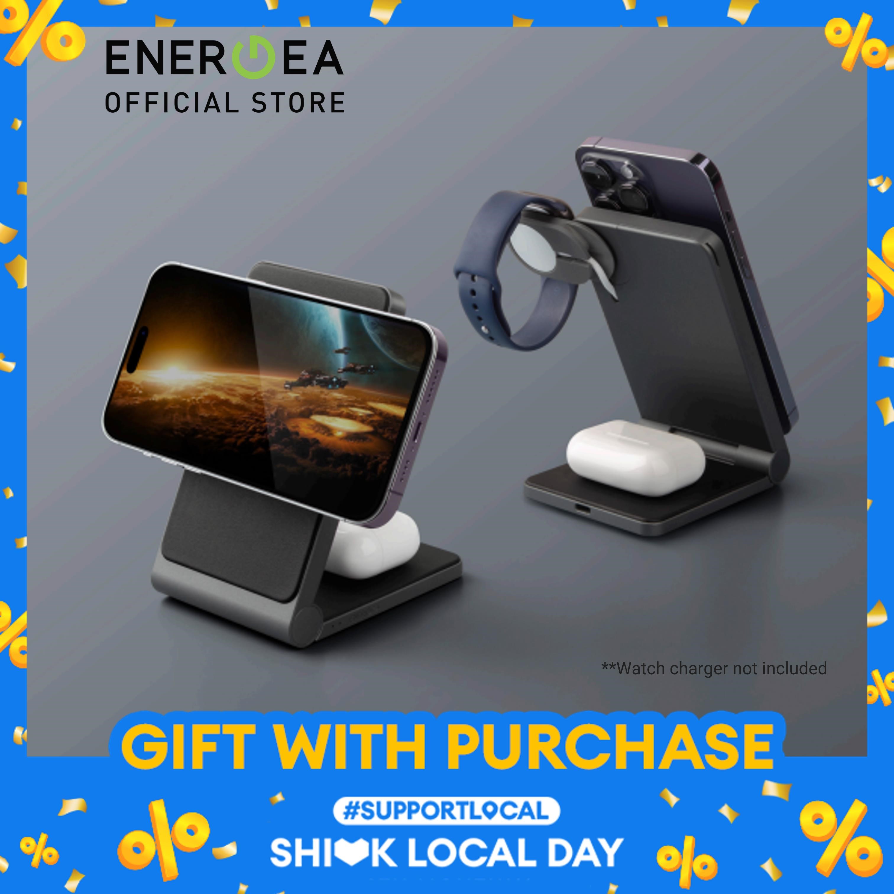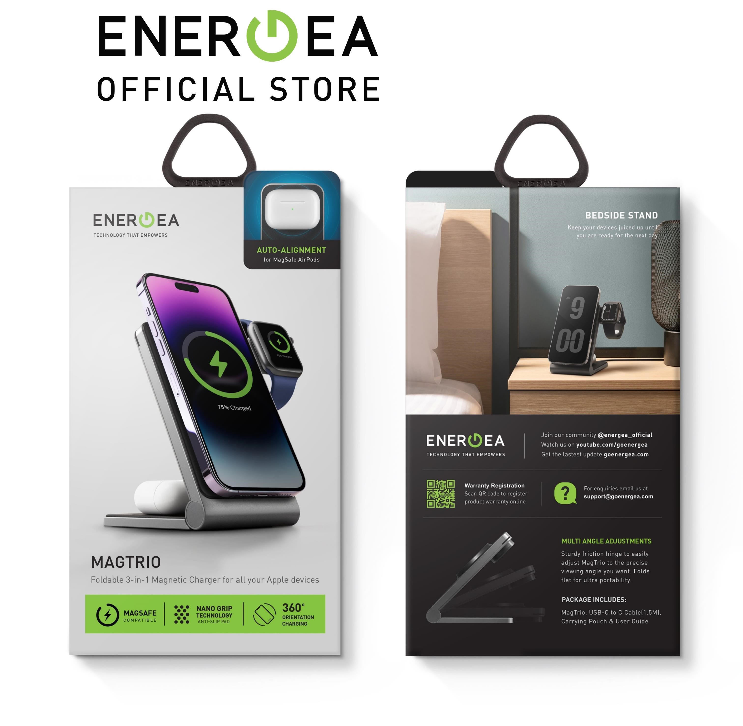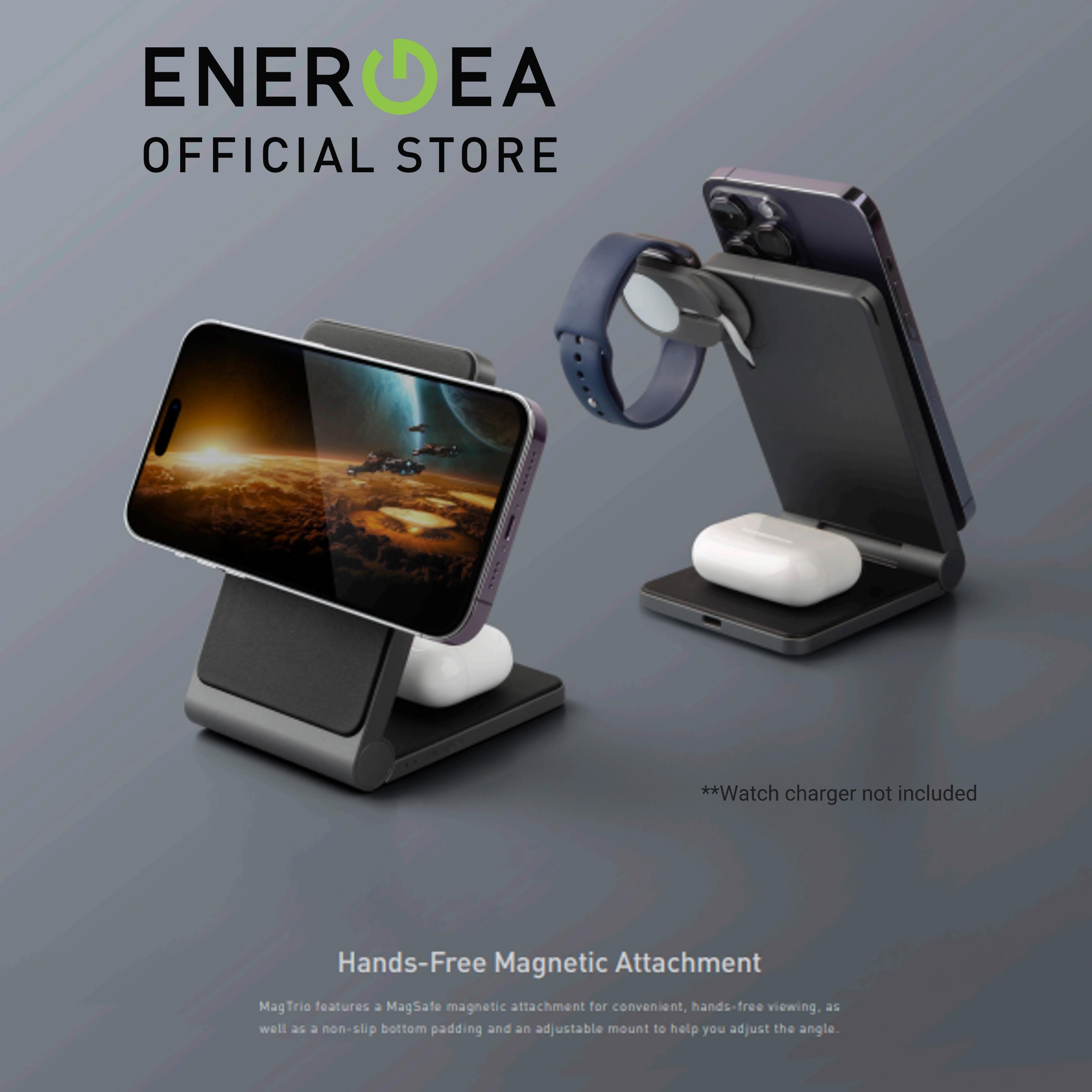 [New Version] ENERGEA MagTrio 3 in 1 Foldable Magnetic Fast Wireless Charger Watch Charger Not Included
