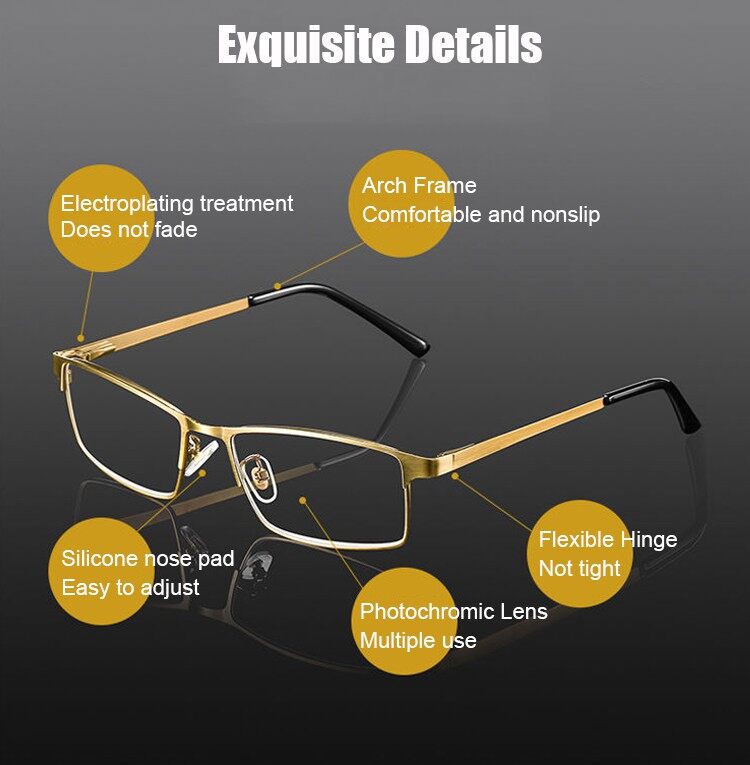【3in1】Progressive Multifocal Reading Glasses Smart Zoom Anti-Blue Light Metal Frame Glasses Business Style Presbyopic Glasses