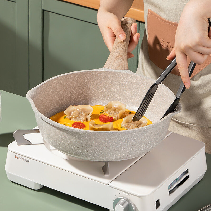 EOX Deep Frying Pan cookware Wok Non-Stick pan Skillet 24/28cm with lid Maifan Stone Suitable All Stove
