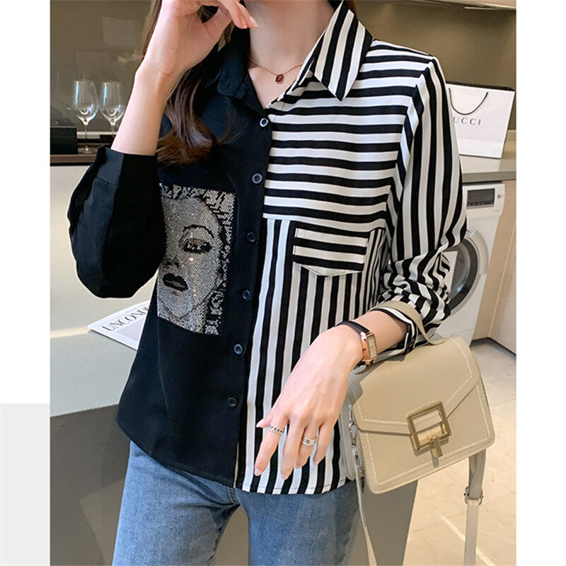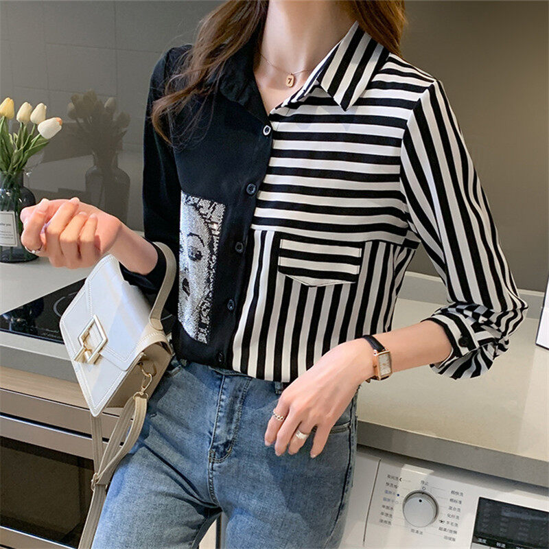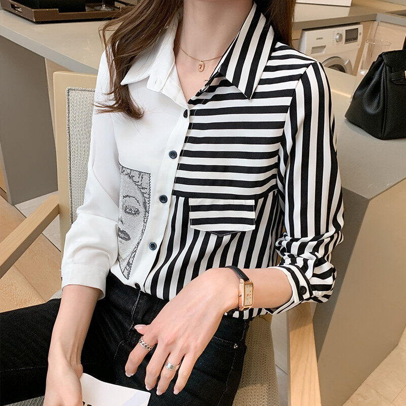Stripe Shirt Women Long Sleeve Chiffon Blouse Korean Style Casual Fashion Top