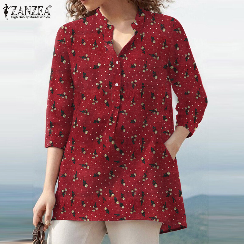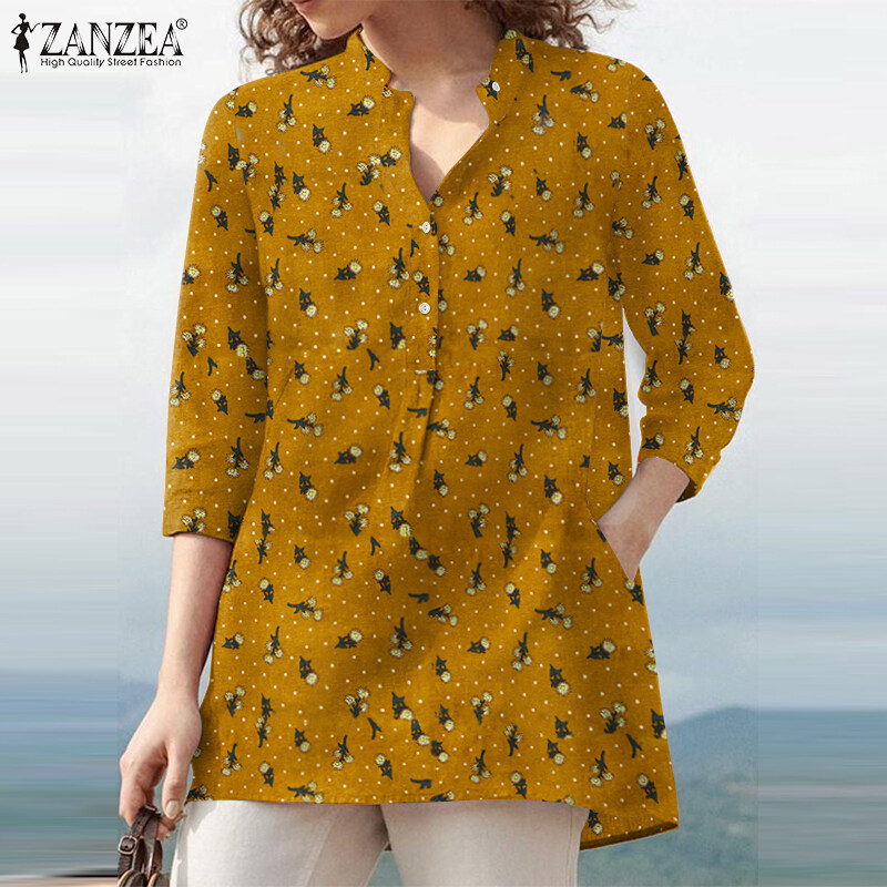 Rulfepy Women Baggy Loose Half Sleeve Shirt Collared Button Down Tee Tops Blouse ZANZEA