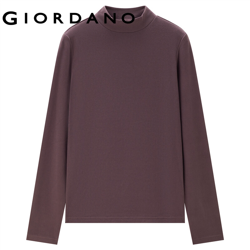 GIORDANO Women T-Shirts Mockneck Solid Color Long Sleeve Simple Basic Tee Stretchy Thermal Fleece Comfy Casual T-Shirts 05322822