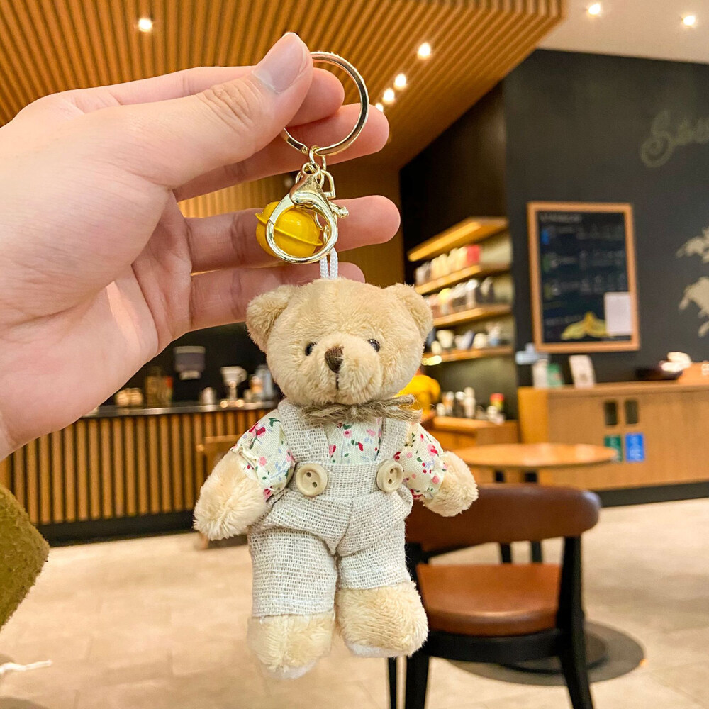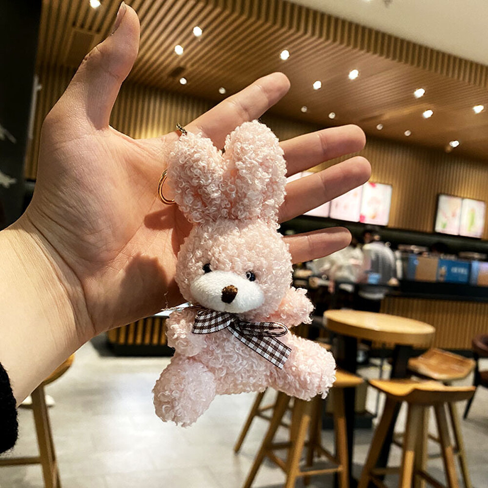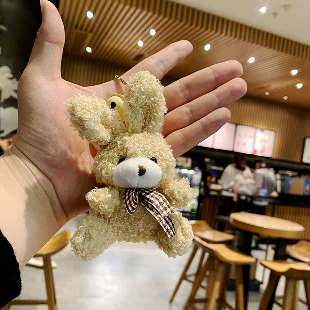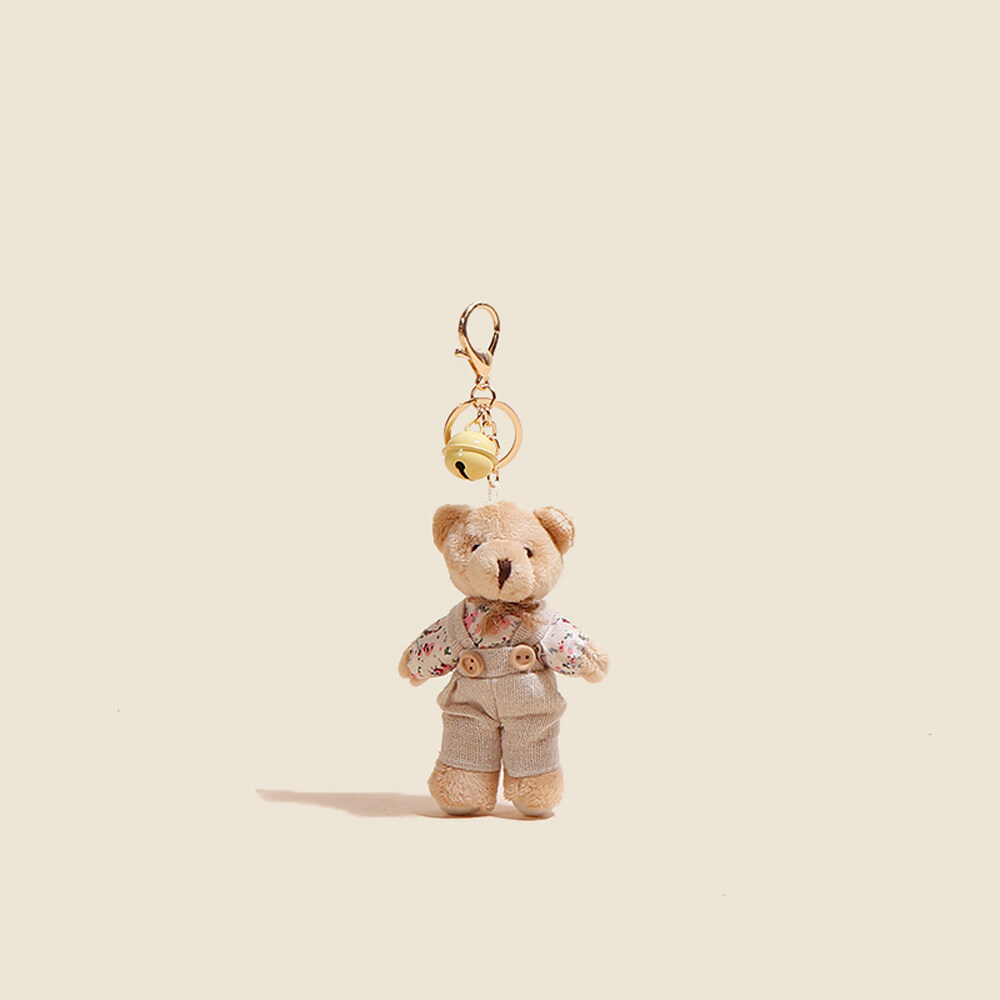 BIRONG Fashion Jewelry Cute Charm Bear Rabbit Ornaments Floral Cloth Bear Keychains Bag Pendant Bell Animal Key Ring