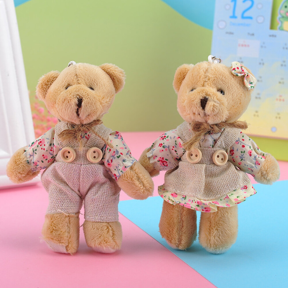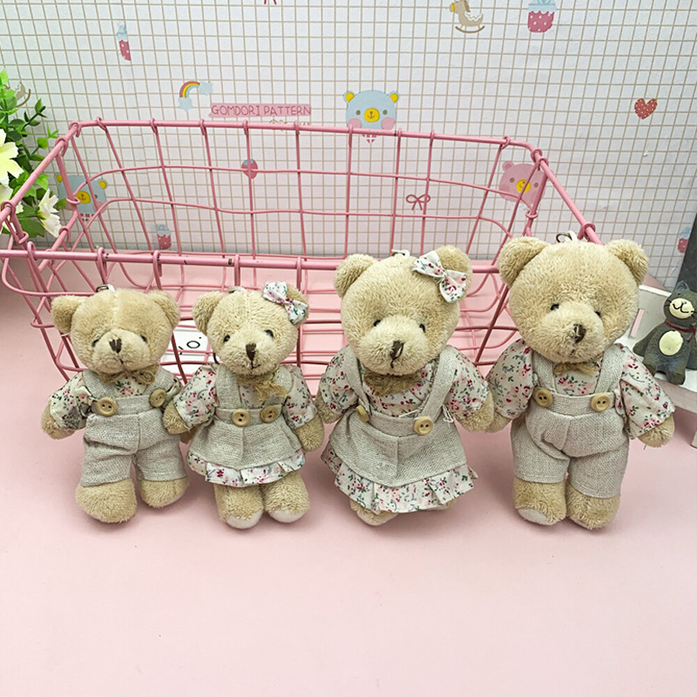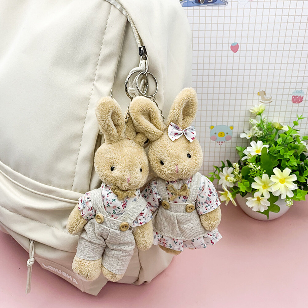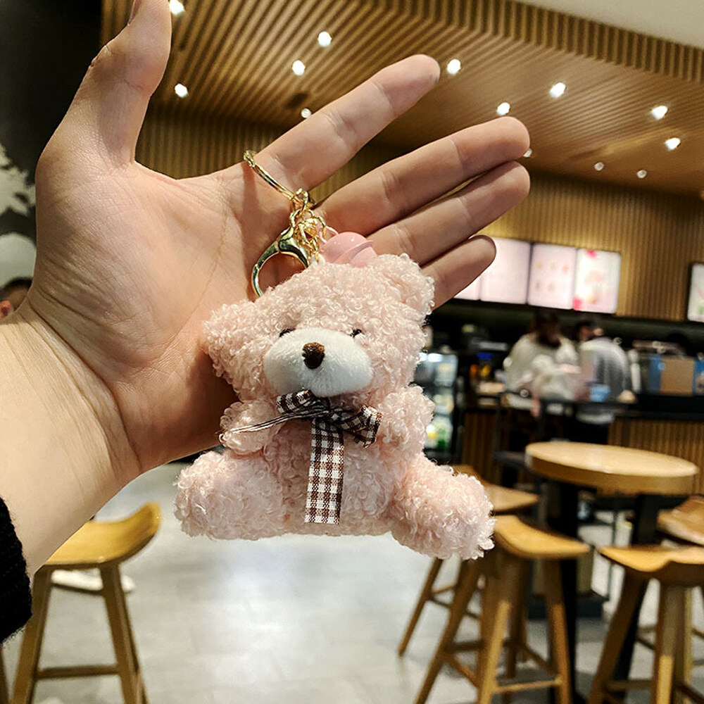 BIRONG Fashion Jewelry Cute Charm Bear Rabbit Ornaments Floral Cloth Bear Keychains Bag Pendant Bell Animal Key Ring