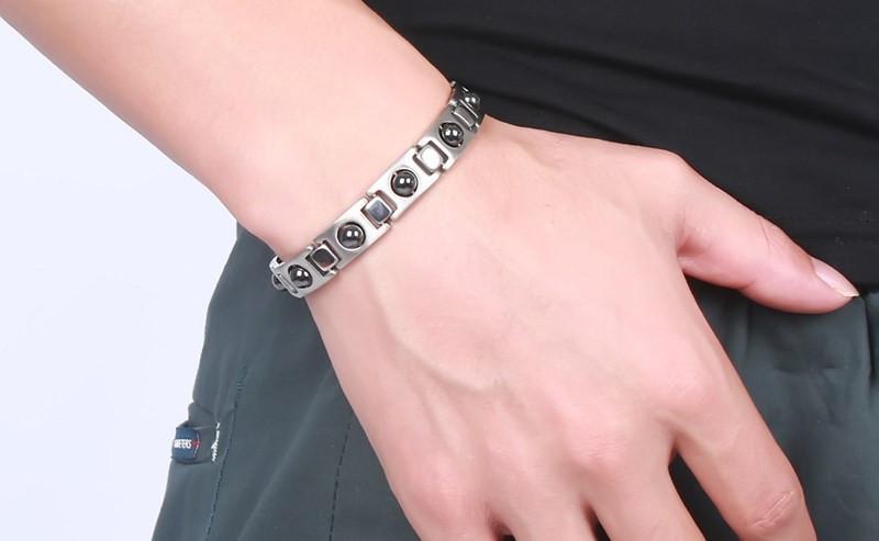 Refined Titanium Steel Energy Therapy Bracelet with Strong Black Magnets Germanium Health Care Bangles Chain