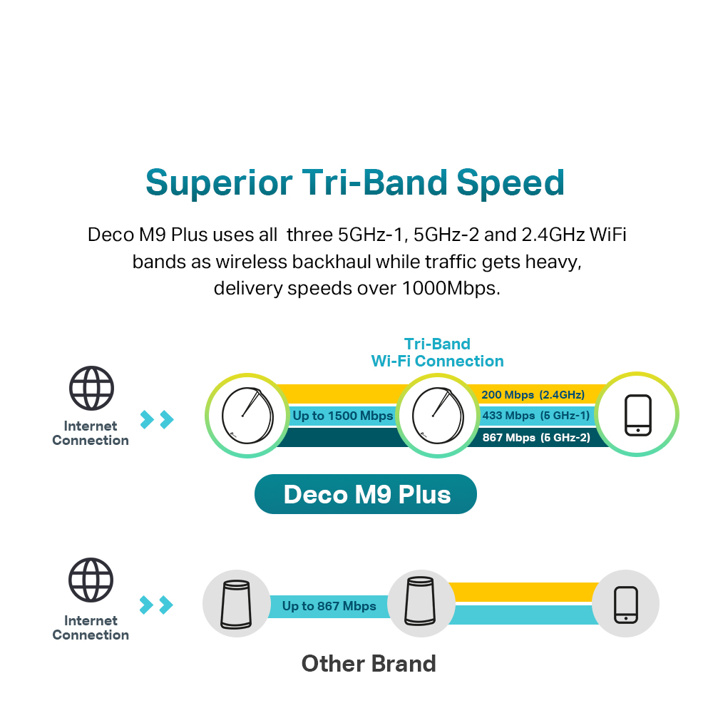 TP-LINK Deco M9 Plus(3-pack) AC2200 Tri Band Gigabit MU-MIMO WiFi Mesh Router (Whole Smart Home Mesh WiFi System) Works with all Telcos (Supports IPTV)
