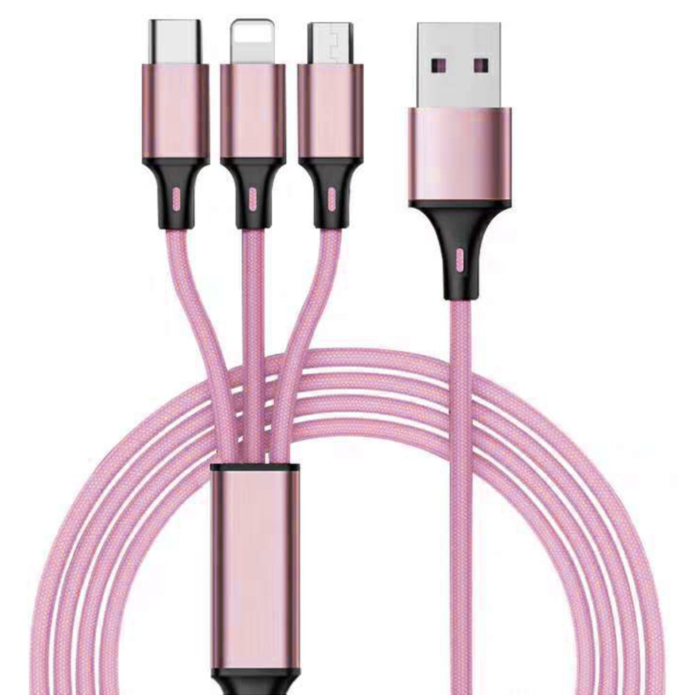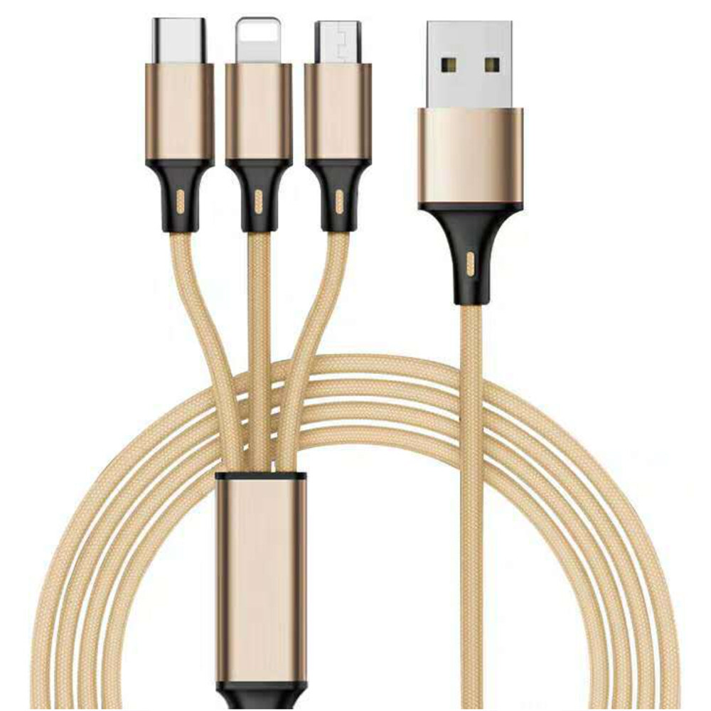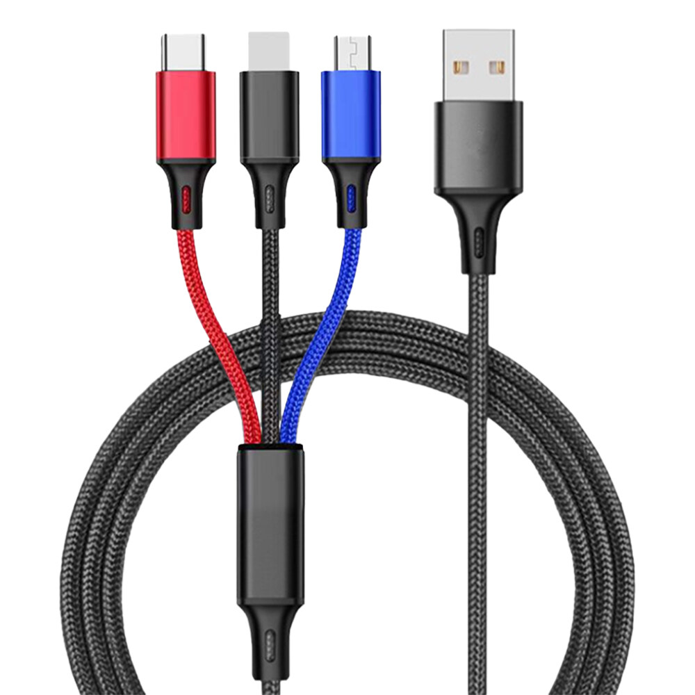 Our one to three nylon braided data cable is the ideal choice for efficient charging and data transmission, making digital life more convenient. Features: The carefully woven nylon thread body, paired with an ABS shell, not only gives the data cable a stylish appearance, but also provides excellent wear resistance and stretch resistance. Function: Supports fast charging technology, with a maximum power of 3A, accelerates the charging process, shortens waiting time, and allows the device to quickly "recharge". Applicable: Fully compatible with iOS, Android, and Type C interface devices, whether you are an Apple, Samsung, or Huawei user, you can enjoy worry free charging experience. Size: The 120cm wire length design ensures freedom of use and is easy to store and carry, meeting your charging needs in different scenarios. Material: High purity composite copper wire is used internally to ensure efficient data transmission rate and stable charging performance, while extending the service life of the data cable. Usage: The one to three design allows you to charge or transfer data to multiple devices simultaneously, making it easy to handle both home sharing and office use. Specifications: Function: Fast Charging Applicable: iOS, Android, Type C Maximum power: 3A Size: 120 * 1 * 1.5cm Material: braided wire+ABS shell+composite copper Quantity: 1