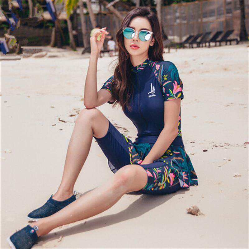 2pcs Dark Blue One Piece of Swimming Suit Conservative Belly Thin Sports Large Size Swimwear for Women 3XL