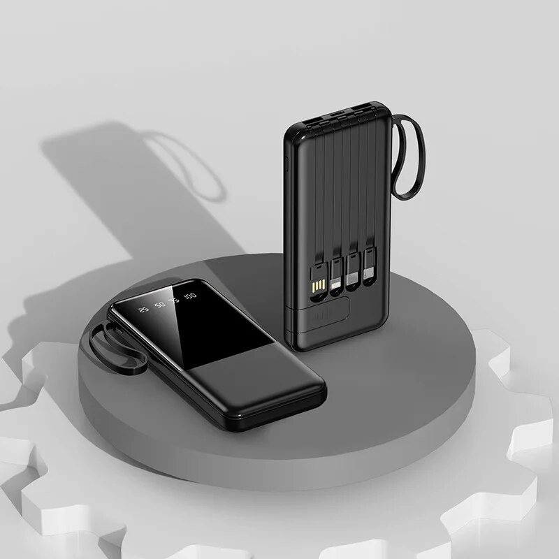 Portable Power Bank 20000mAh Fast Charging External Battery Charger Powerbank For iPhone Xiaomi Built in Cables