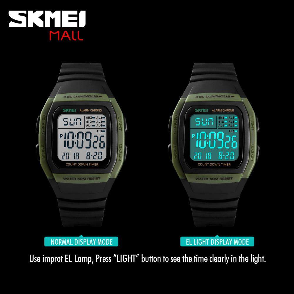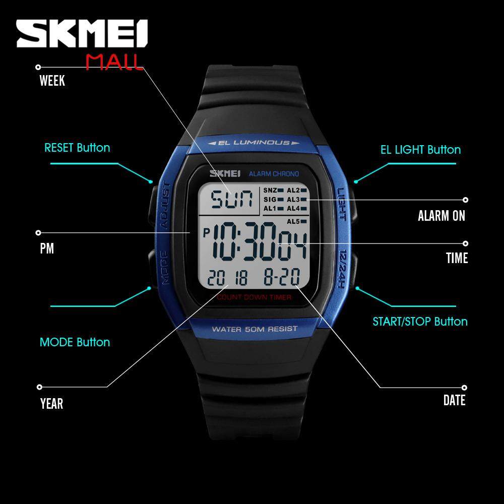 SKMEI 1278 Men's Sports Watch Dual Time 5 Groups Daily Alarm Snooze Hourly Chime Timer Chronograph Countdown Calendar 50m Waterproof Backlight