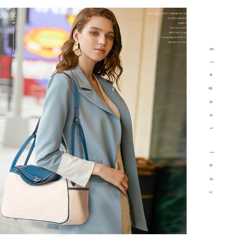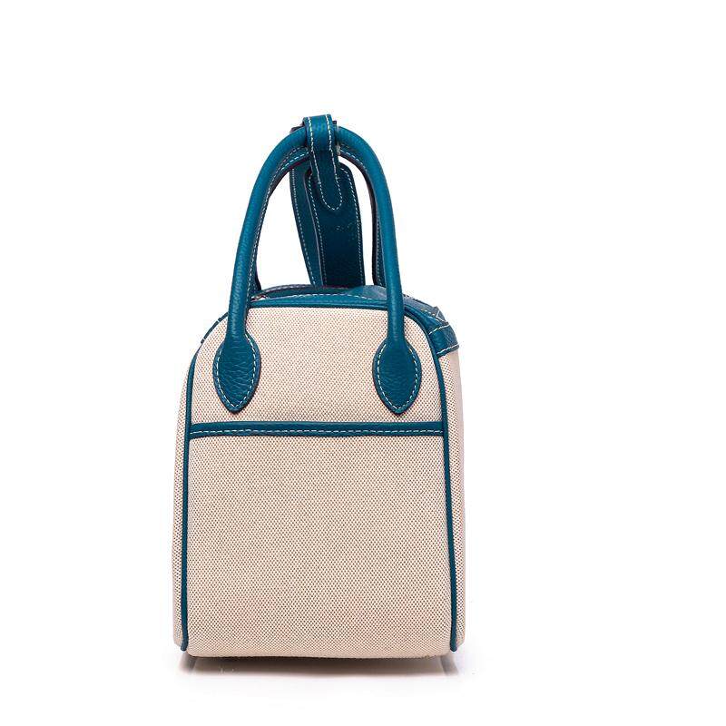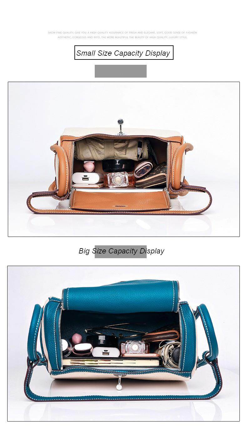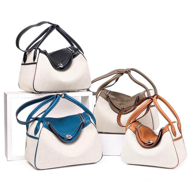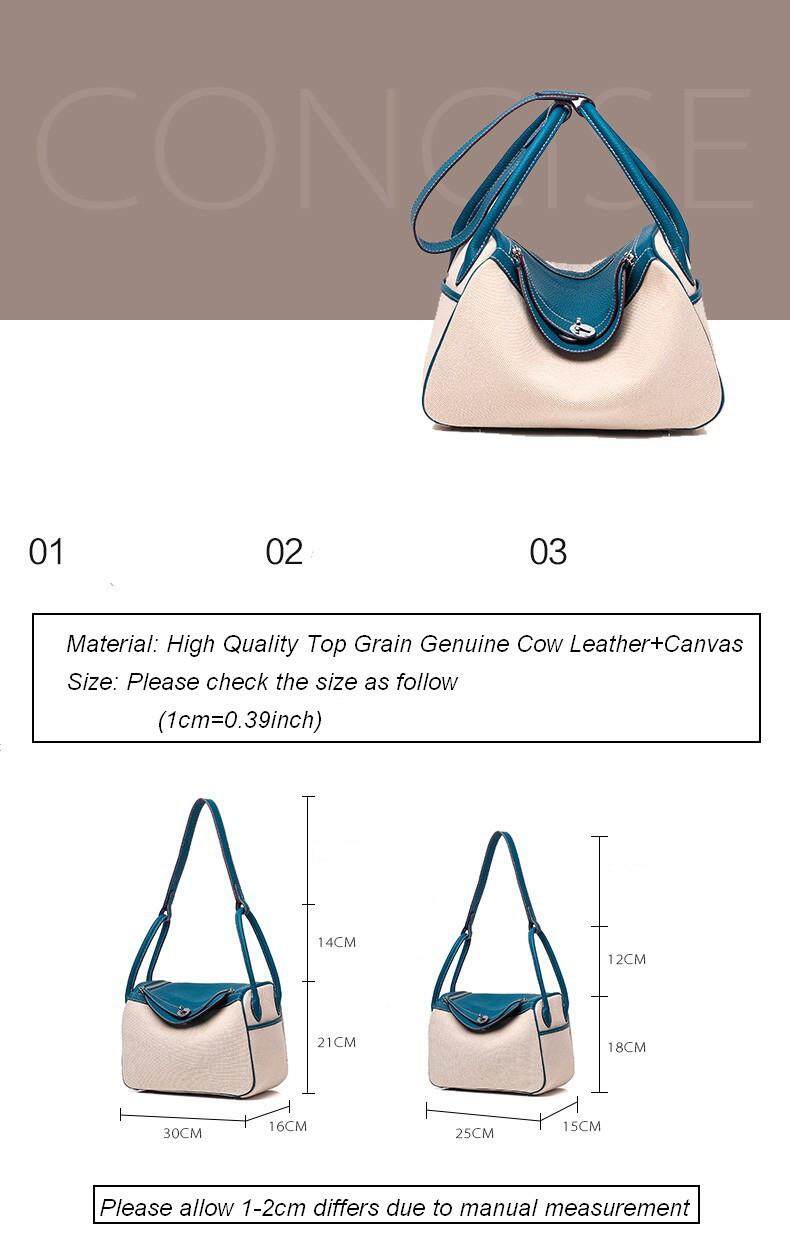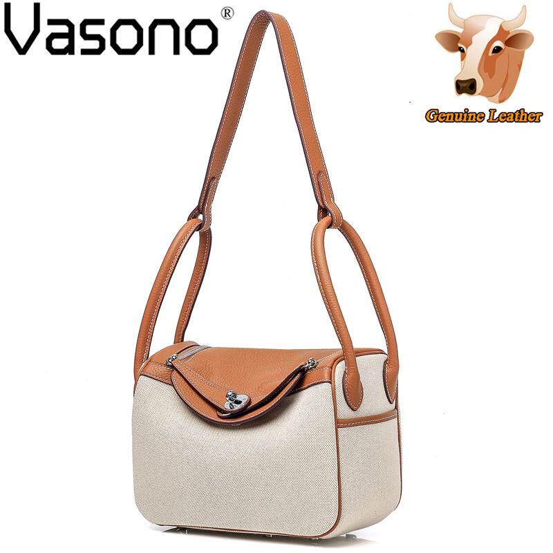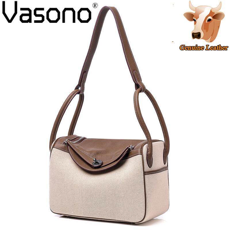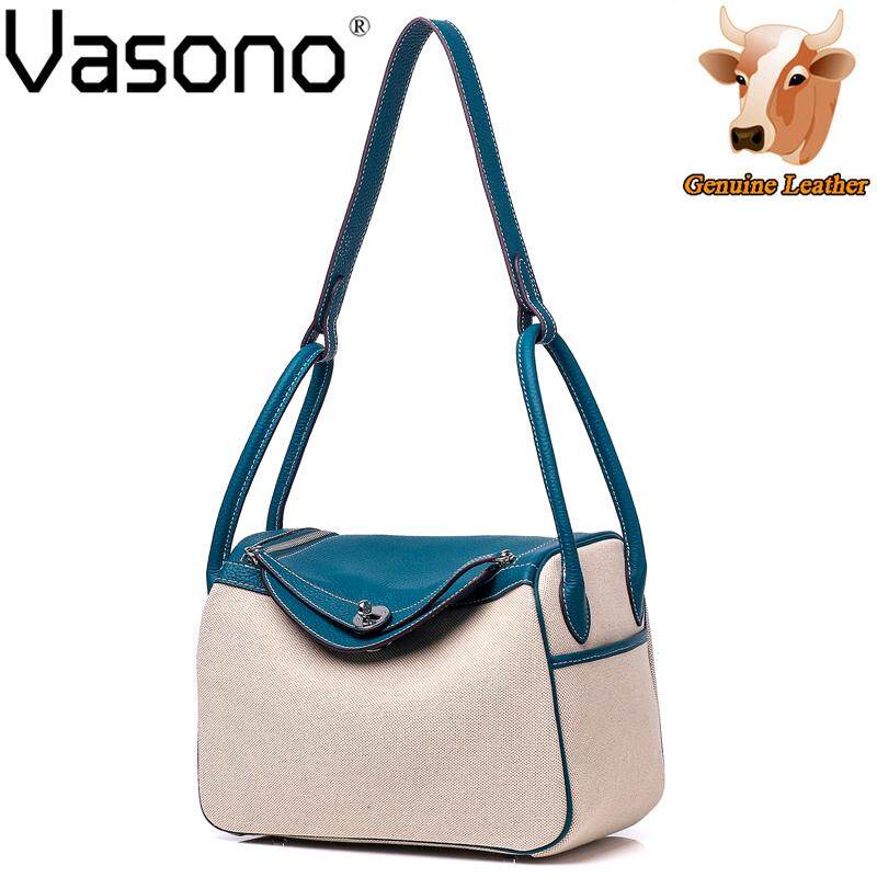 Vasono High Quality Top Grain Genuine Cow Leather + Cloth Women Top-Handle Bag Lady Single Shoulder Bag