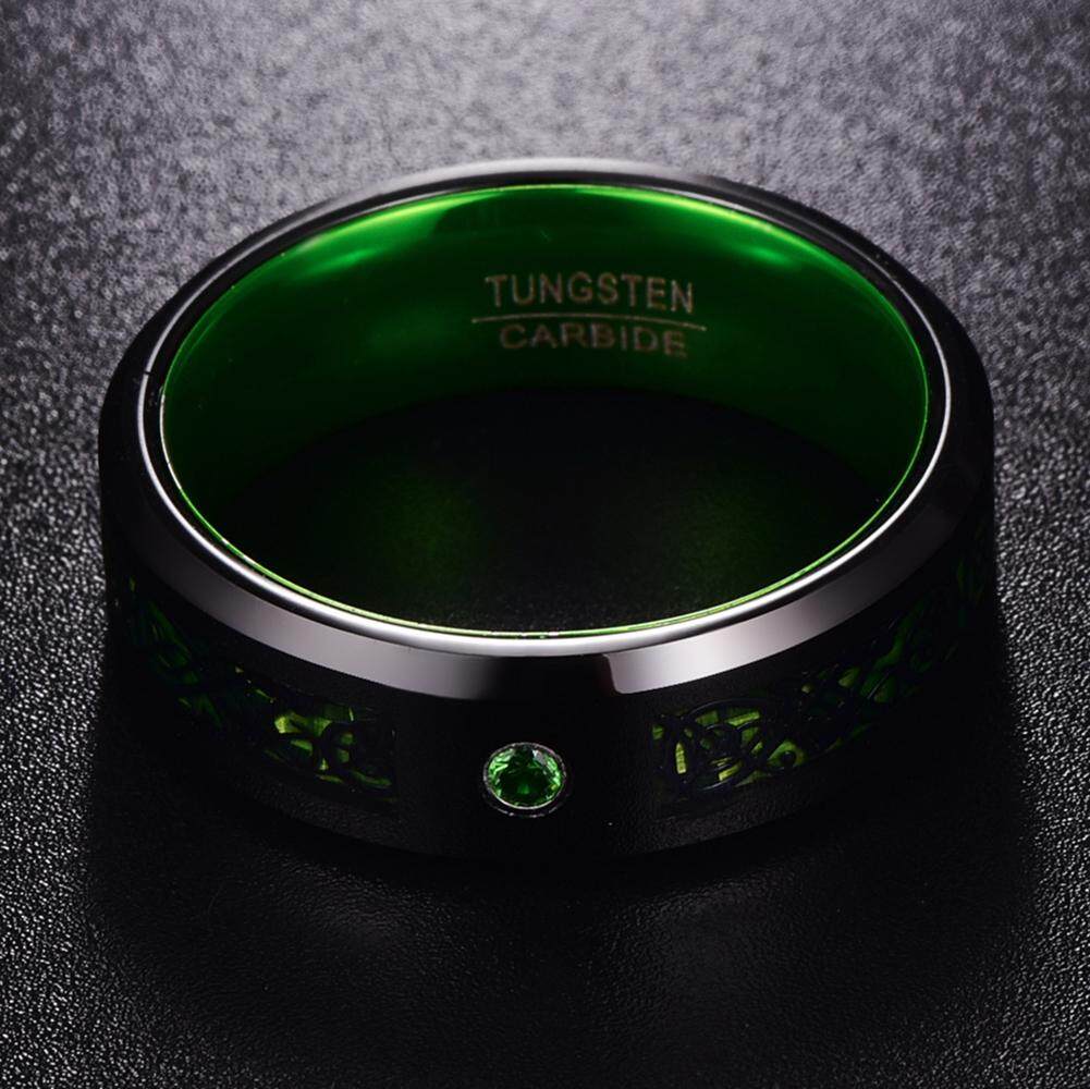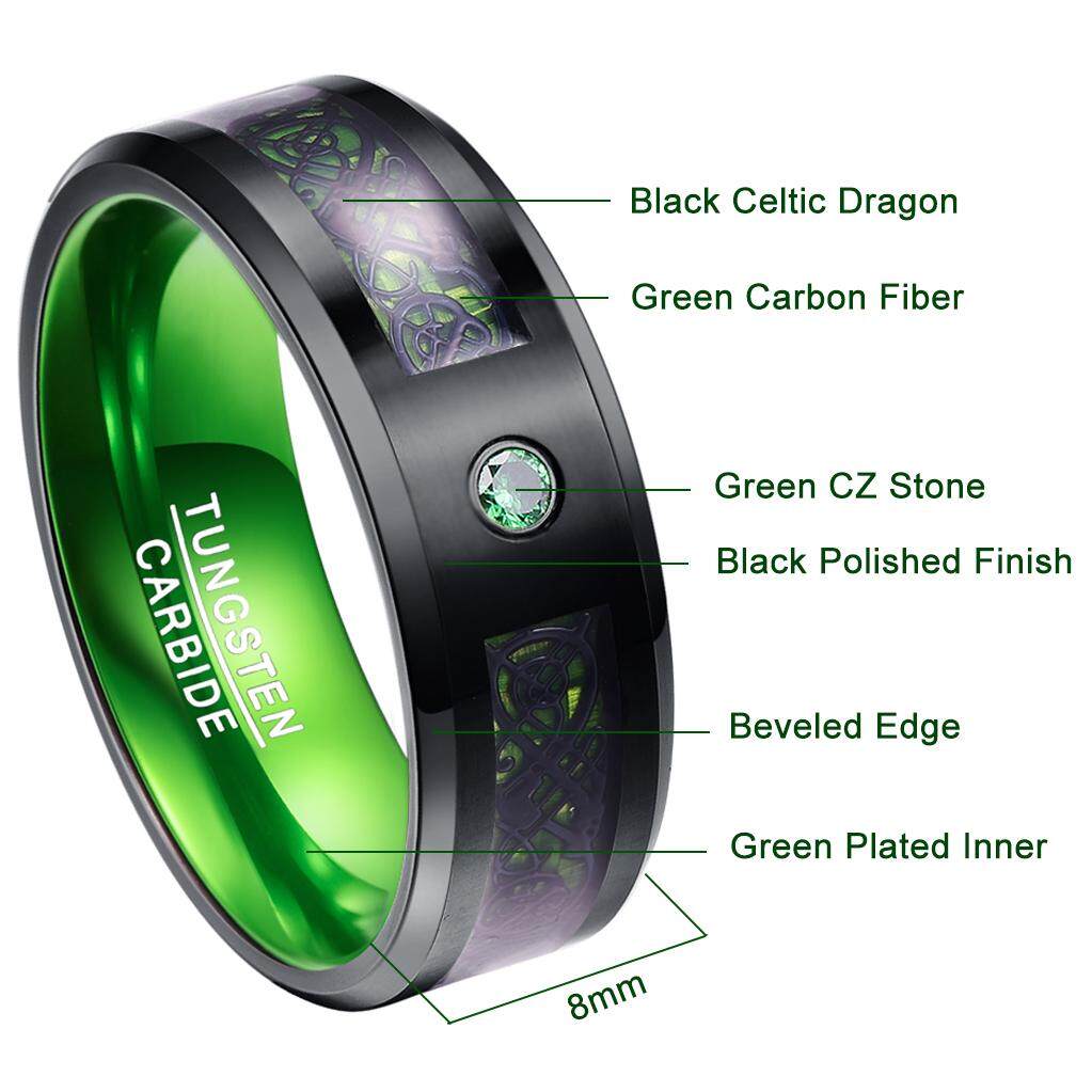 AVECON 【Support Engrave】Green Tungsten Carbide Wedding Band Ring Celtic Dragon Green Carbon Fiber for Men 8mm Size 7 to 14