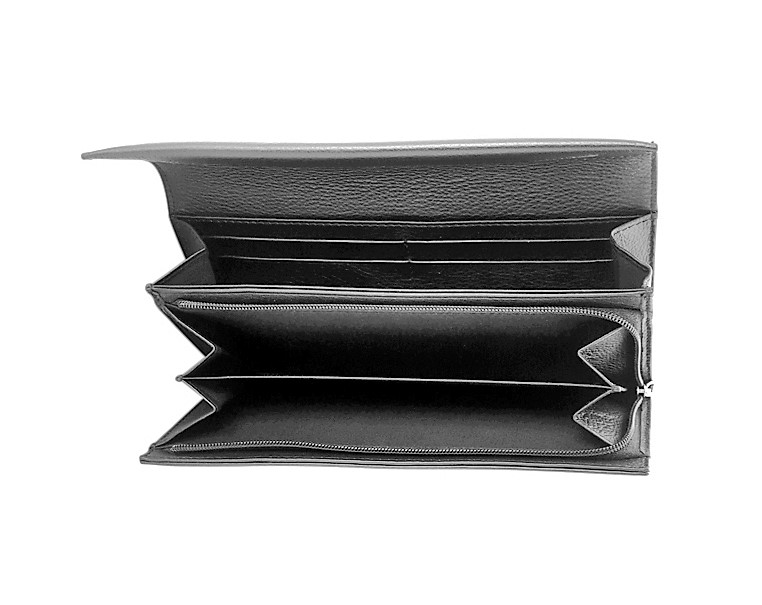 Women Wallet Long Purse - Lady Long Wallet - Cow Leather Wallet for Women - Lady Wallet Branded in Black/Green colour- Oxhide J0016- Excellent Christmas Gift Idea