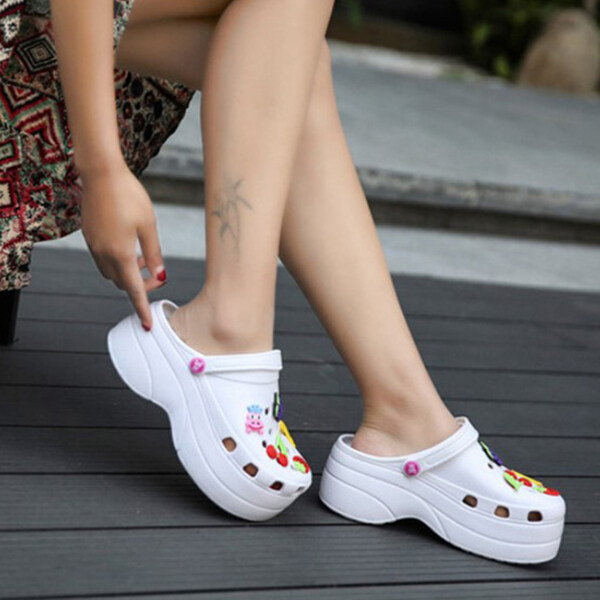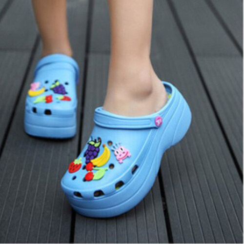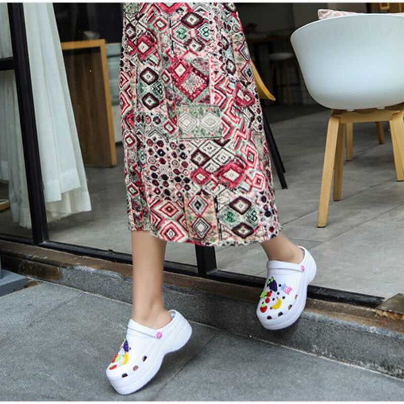 Summer Women Croc Clogs Platform Garden Sandals Cartoon Fruit Slippers Slip On For Girl Beach Shoes Fashion Slides Outdoor