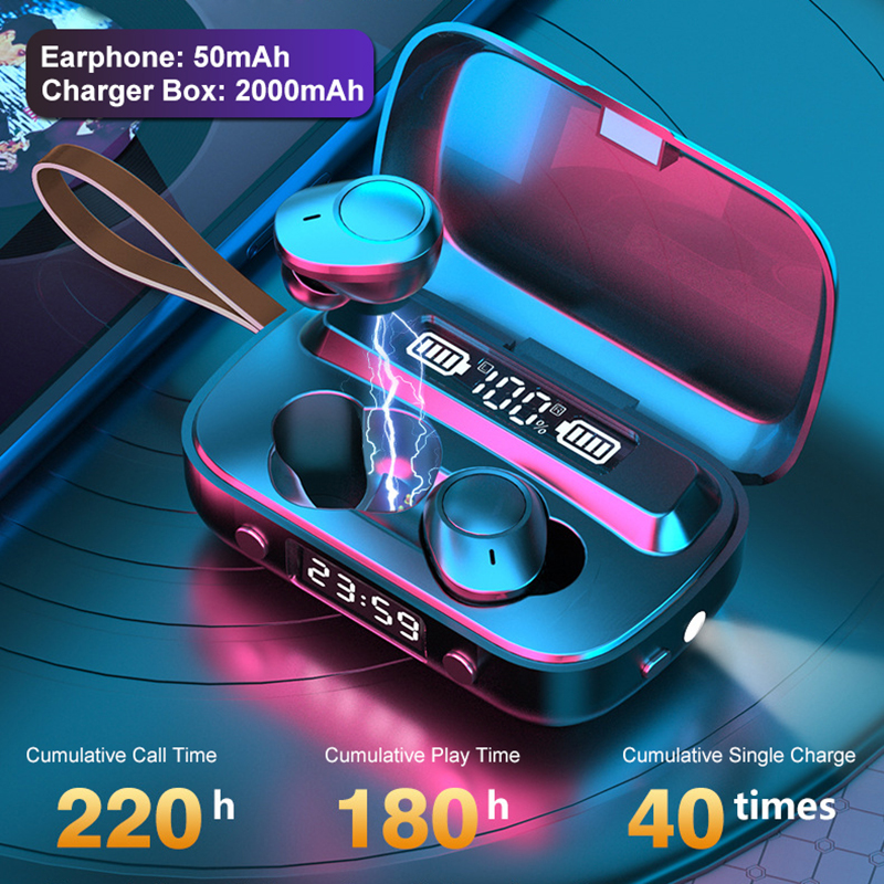 3). Multifunctional design, it not just two earphones, charger box integrated with flashlight, time display clock, meet your different daily needs.