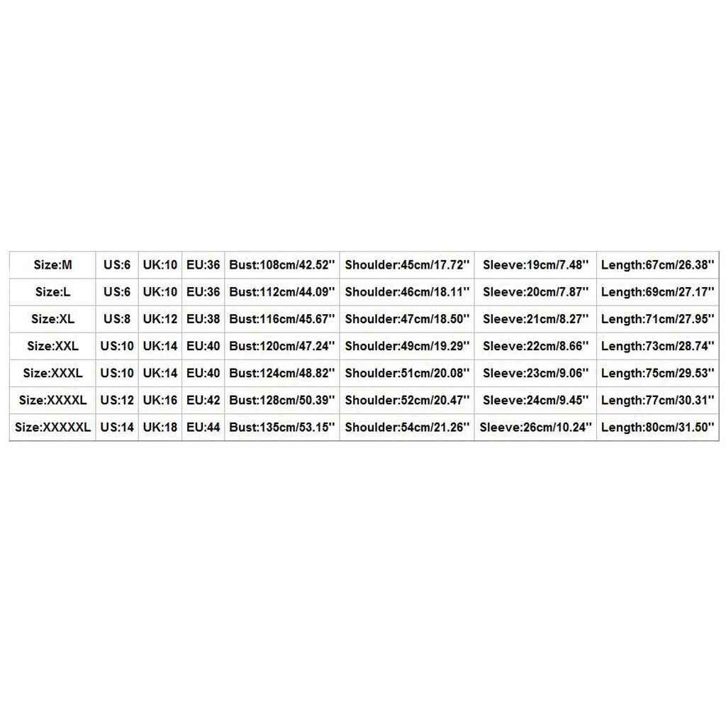 Size:XXXXL US:12 UK:16 EU:42 Bust:128cm/50.39'' Shoulder:52cm/20.47'' Sleeve:24cm/9.45'' Length:77cm/30.31''