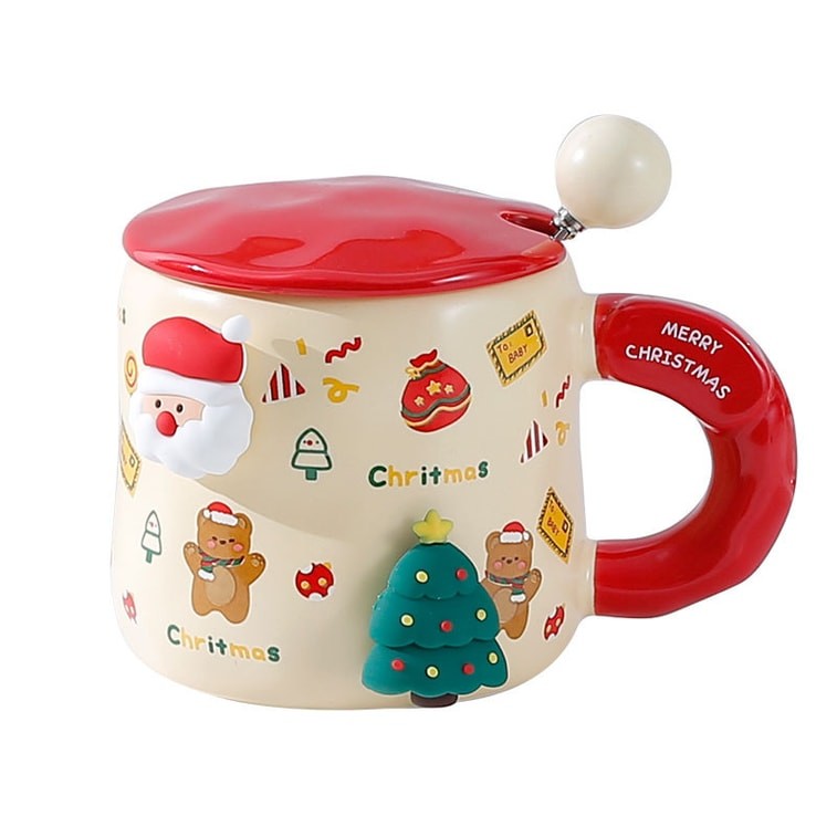 Christmas Mug Gingerbread Man Mug High Color Ceramic Mug With Lid And Spoon Christmas Gingerbread Man Gift Set