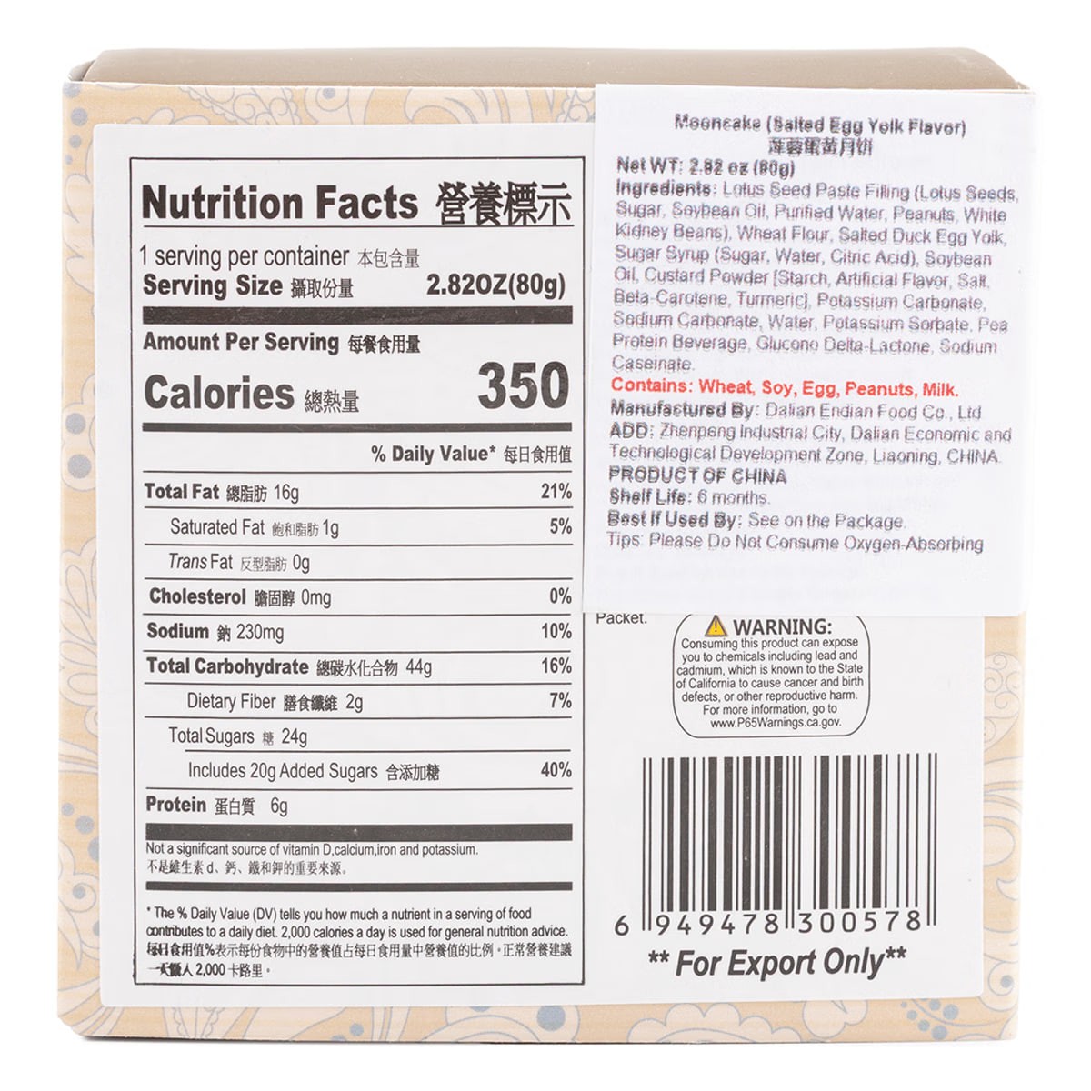 Endian Salted Egg Yolk Lotus Seed Paste Mooncake 80g 80 g
