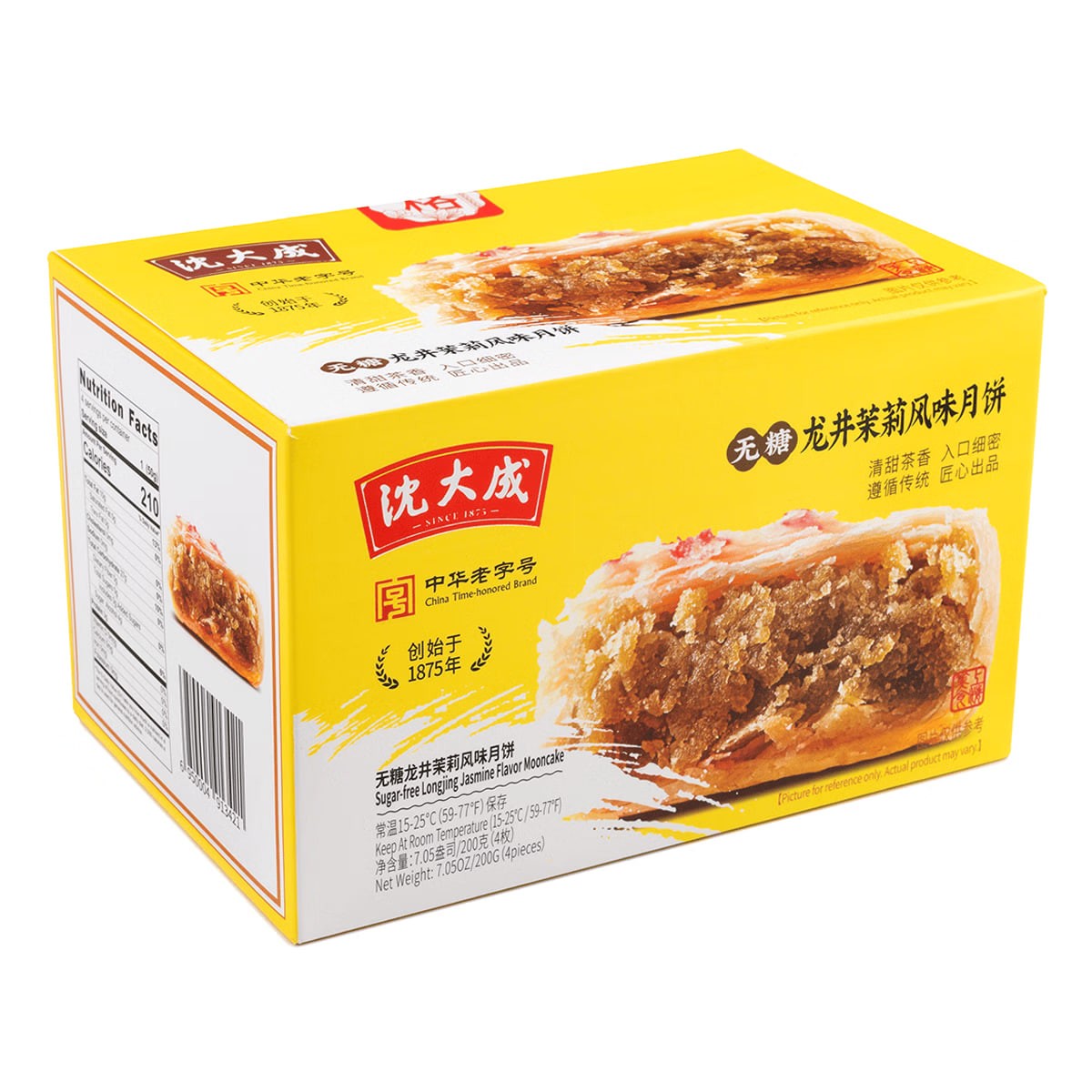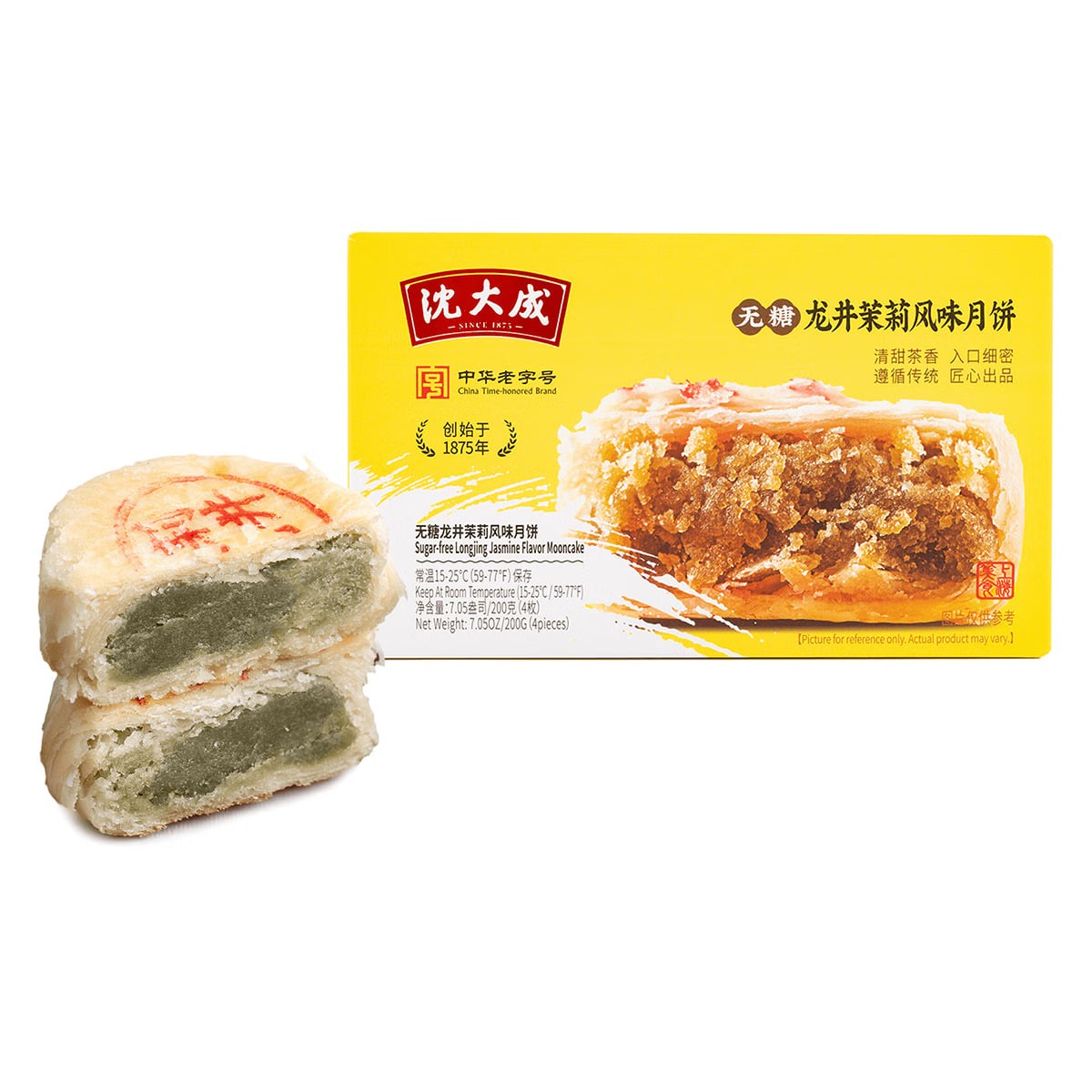 Shen Dacheng (Shanghai Time-Honored Brand) Su-Style Longjing Jasmine Flavored Mooncakes, Sugar-Free, Fine Sand Shortbread, a Mid-Autumn Festival Shanghai Specialty, 4 pieces, 200g. Suitable for those with diabetes.