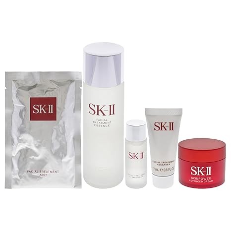 SK-II Cult Favorites Skincare Set for Women - 5 Pc 0.5oz Facial Treatment Cleanser, 1oz Treatment Clear Lotion, 5.3oz Treatment Essence, 0.4oz Skinpower Advanced Cream, 1 Pc Treatment Mask